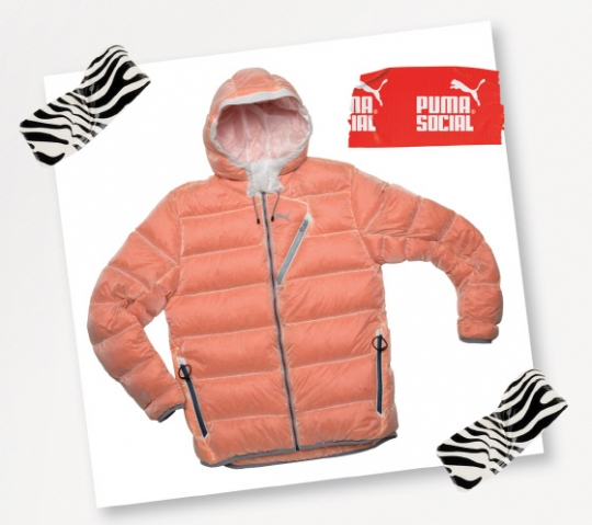 푸마의 속 보이는 '투명 구스다운 재킷'은 화려한 색상으로 염색된 충전재와 비치는 겉감을 사용해 충전재 컬러가 옷감의 색처럼 보이는 신개념 점퍼다.