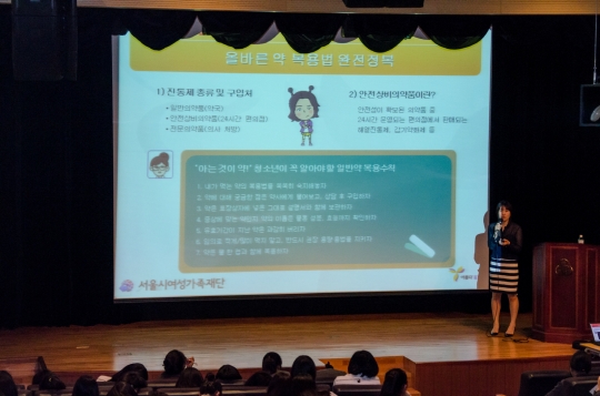 지난해부터 서울시여성가족재단은 청소년 성(性)건강 교육 프로그램인 '아름다움(Womb) 사업'을 전개했는데 올해는 한국존슨앤드존슨과 손잡고 청소년을 위한 약 복용 교육 강연을 추가한 것. 생리통 진통제와 같은 일반약 복용이 잦은 여학생의 안전한 약 복용을 돕고 청소년 약물 오·남용을 예방하겠다는 취지에서 마련됐으며 이미 상반기에만 34개 학교 1만600여명의 학생이 클래스에 참여했고 하반기에는 11곳 5500명의 학생이 올바른 약 복용법을 배웠다. 내년에는 여중생으로 교육 대상을 확대한다고 하니 교육 성과도 제법 훌륭한 셈이다. 교육 내용이 궁금해 직접 찾아간 기자도 놀랄 정도로 재밌고 알찬 내용을 자랑하고 있을 정도로 말이다.