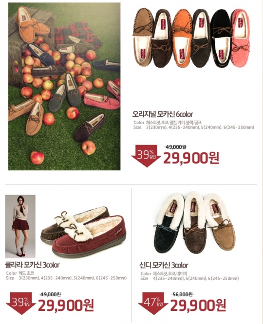 오리지널 모카신·클라라 모카신·신디 모카신 등 3종으로 구성된 모카신 컬렉션은 켤레당 2만9900원에 판매한다. 제품은 레디숍에서 구입할 수 있다.