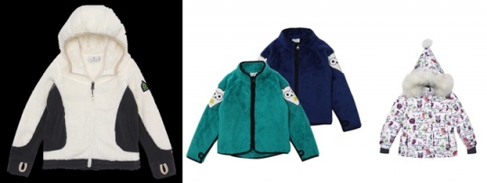 왼쪽부터 여아 보아점퍼, 부엉이 보아집업, 여아 부엉이 스키다운 점퍼.