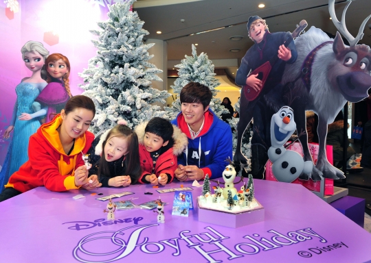디즈니 겨울왕국 축제 '조이풀 홀리데이'의 포토존에서 온가족이 사진 촬영을 하고 있다. /월트디즈니컴패니코리아 제공