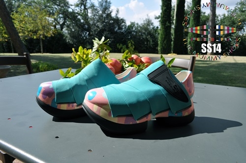 대표 아이템인 '머미 슈즈'는 운동화 형태의 틀에 끈을 돌돌 말아서 신는 신발로 일명 '붕대신발'로도 유명하다.