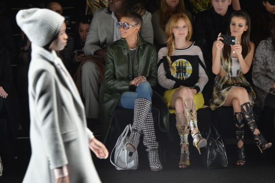 삼성전자는 6일부터 13일까지 뉴욕 맨해튼 링컨센터에서 진행되는 2014년 F/W 뉴욕 패션위크에 '삼성 패션 커넥티드' 체험존을 마련해 갤럭시 노트 프로, 갤럭시 노트3, UHD TV 등을 통해 통합된 제품 경험을 제공한다.사진은 2014년 F/W 뉴욕 패션위크에서 진행된 레베카 밍코프 패션쇼에서 '갤럭시 노트3'로 사진을 찍고 있는 배우 빅토리아 저스티스(사진 맨 오른쪽) /삼성전자 제공