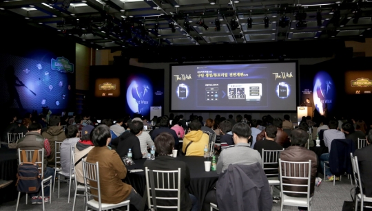 22일 엔씨소프트 판교 R&D 센터 컨벤션 홀에서 열린 엔트리브소프트의 비전 발표회 현장 모습. /엔트리브소프트
