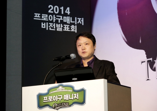 강상용 엔트리브소프트 강상용 개발본부장이 '프로야구 매니저' 비전을 발표하고 있다. /엔트리브소프트