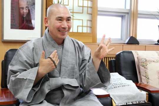 인터뷰를 하기 위해 동국대 정각원을 찾아 자리에 앉는 순간 스님이 먼저 입을 열었다. 전화번호를 저장하고 몇 번인가의 통화 후 스님으로부터 오는 '오늘의 명상'이라는 문자 얘기로 자연스럽게 안부를 물은 것이다.