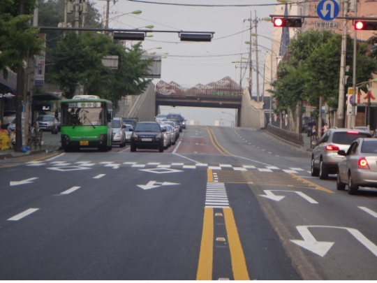 교통개선사업으로 U턴이 개통된 구간의 도로 노면표시 /동대문구 제공