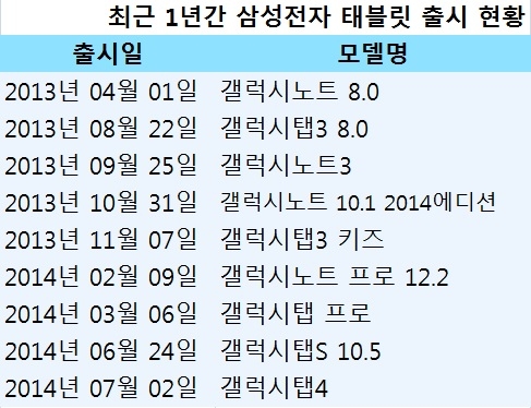 7월 2일 출시된 삼성전자 태블릿PC 갤럭시탭4. 휴대성을 강조한 이 제품은 KT와 LG유플러스 전용으로 나왔다. /삼성전자 제공
