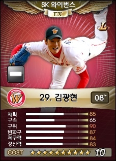 프로야구 매니저 2014의 SK김광현 선수 카드.