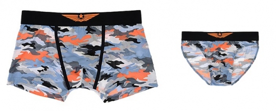 한편 예스의 '밀리터리 커플 팬티'는 군복을 모티브로 한 카모플라쥬 패턴에 트렌디한 컬러를 적용한 커플 아이템이다.