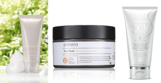 왼쪽부터 코스메 데코르테 '클레이 블랑', 프리메라 '모로코 라바 클레이 포어 마스크', 허벌라이프 '퓨리화잉 민트 클레이 마스크'.