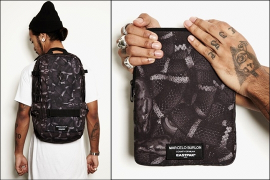 마르셀로 블론은 이번 이스트팩 협업 제품에도 감각적인 뱀무늬를 적용했으며, 백팩과 아이패드 케이스 등 두 가지 버전으로 출시했다.