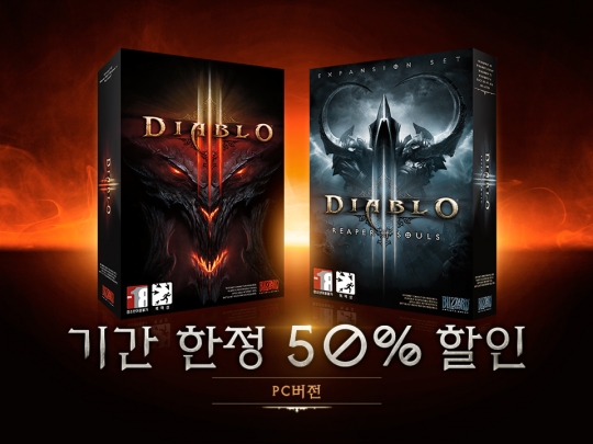 블리자드 엔터테인먼트는 한국 팬들의 성원에 보답하기 위해 PC 버전 '디아블로 Ⅲ' 오리지널과 확장팩 '디아블로 Ⅲ: 영혼을 거두는 자'를 7일 오후 4시까지 한시적으로 50% 할인 판매한다고 1일 밝혔다.