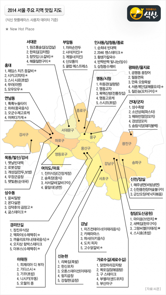 식신 핫플레이스가 사용자 정보 통계를 바탕으로 구성한 서울 맛집 지도. /씨온