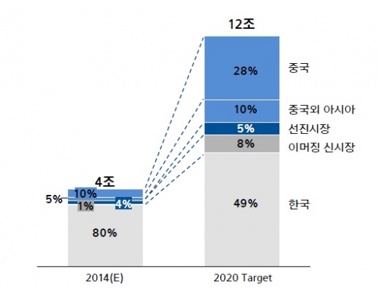 아모레퍼시픽그룹은 2020년 원대한 기업으로 도약하기 위해 매출 12조원과 이익율 15%, 글로벌 사업 비중 50% 달성을 목표로 하고 있다.