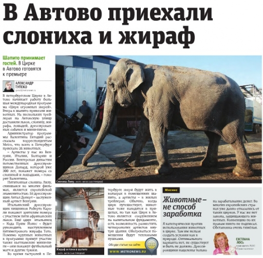 하지만 상트페테르부르크의 동물보호 단체들은 이번 서커스 개최에 부정적인 입장이다.