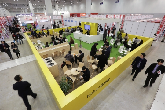지스타2014 B2B 전시관의 모습. 올해 지스타는 B2B 성장이 돋보인 행사였다. 지스타 2014 B2C 입장객은 예년 수준이었지만 B2B 입장객은 지난해보다 18.5% 증가할 정도로 전세계 투자자들의 발길이 이어졌다. /지스타 사무국