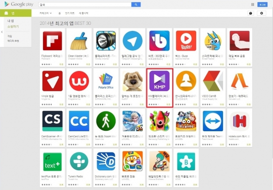 판도라TV는 KM플레이어 앱이 출시 8개월만에 500만 다운로드를 기록하며 구글플레이 '2014 최고의 앱 BEST 30'에 선정됐다고 3일 밝혔다.