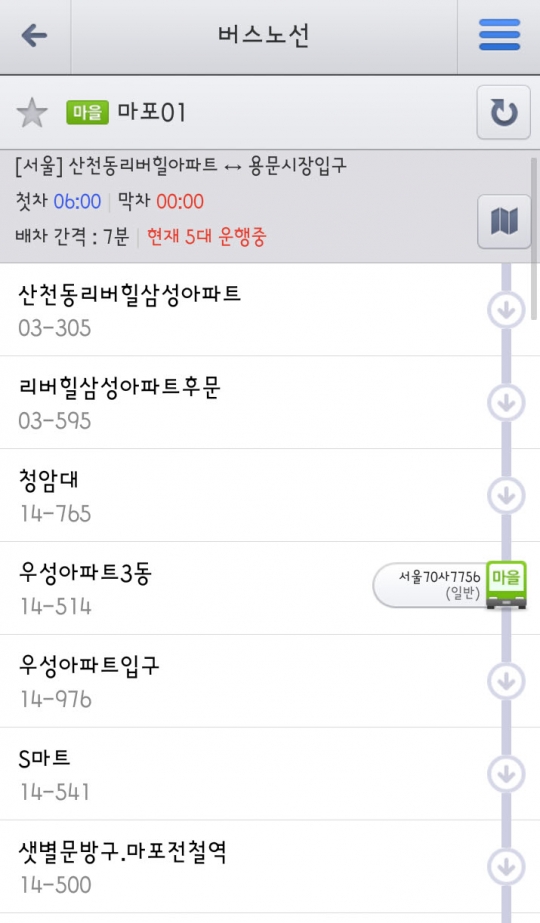 이용자는 다음 지도 PC와 모바일 웹 또는 앱에서 원하는 마을버스 번호를 검색하면 기점과 종점, 첫차와 막차 시간 및 배차간격과 함께 현재 지나는 정류장 위치를 확인할 수 있다.