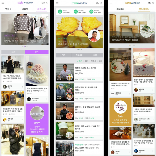 샵윈도는 패션, 식품, 리빙 등 여러 분야에 걸쳐 온라인에서 접하기 힘들었던 상품들을 스타일윈도, 프레시윈도, 리빙윈도 세 가지 카테고리를 통해 폭넓게 소개한다.