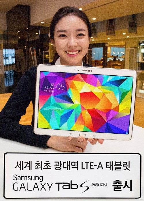 삼성전자의 경우 가장 빠른 광대역 LTE-A를 지원하는 제품까지 출시했다. 지난달 3일 10.5인치 '갤럭시탭S 광대역 LTE-A' 신제품을 선보였다. 국내 출시된 제품 중 유일하게 이통3사의 광대역LTE-A를 지원, 기존 LTE보다 3배 빠른 속도의 서비스를 이용할 수 있다. 고용량의 멀티미디어 콘텐츠도 빠르게 다운받을 수 있다. 가격은 79만9700원이다.