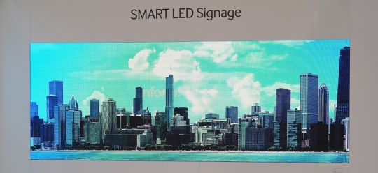 삼성전자는 스마트 LED 사이니지 솔루션도 새롭게 공개한다. 스마트 LED 사이니지는 베젤(테두리) 없이 대형 화면을 선명한 화질로 구현해 화면 몰입감을 높인 제품으로 설치 환경과 고객 요구에 따라 다양한 크기와 형태를 구성할 수 있다.