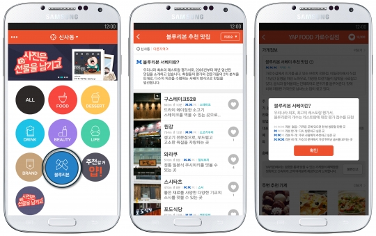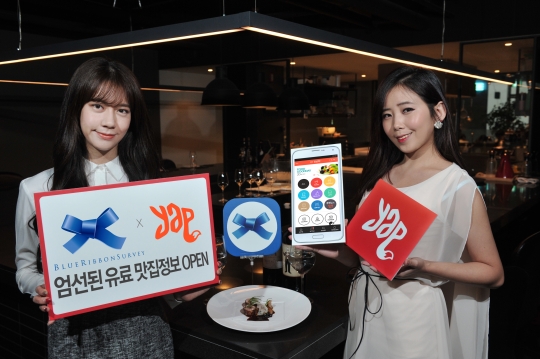 블루리본 서베이 유료 맛집 정보가 얍(YAP)에서 무료로 제공된다. 사진은 모델들이 블루리본 서베이 제휴를 알리는 모습. /얍