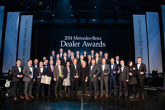 '2014 메르세데스-벤츠 딜러 어워드'는 지난 1년 동안 판매 및 서비스에 대한 성과를 분석해 각 영역에서 가장 우수한 성과를 기록한 개인 및 딜러사를 시상하는 행사로, 이번 행사에는 6개의 딜러십 부문과 '최우수 영업사원', '최우수 서비스 어드바이저' 등 12개 분야의 개인 부문에 대한 시상이 진행 되었다. 특히, 올해 시상식에는 고객 서비스 만족도 1위 전시장 및 서비스센터 분야, 최우수 법인 판매 영업 사원 분야, 최우수 A-Class, B-Class 영업사원 분야 등 수상 분야가 지난해 보다 세분화되어 각 판매 활동별 전문성이 강조되었다.