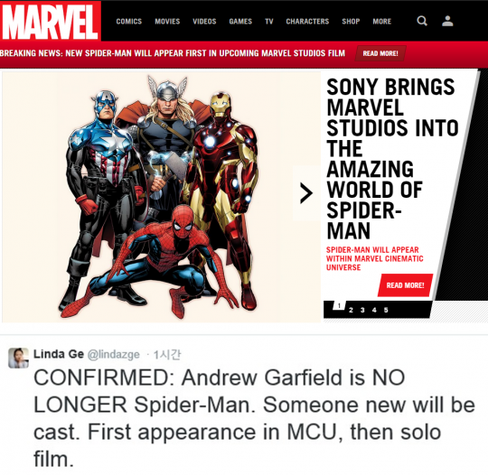 스파이더맨 소니 마블 합의 /마블 홈페이지, 앤드류 가필드 스파이더맨 하차 /SNS