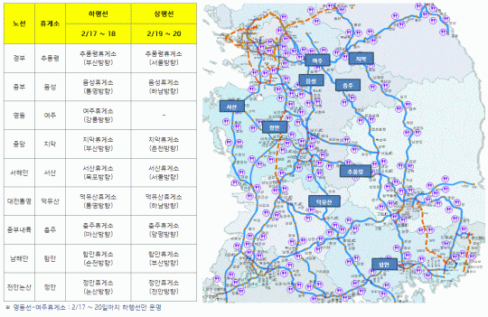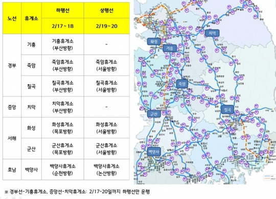 하행 휴게소에서는 17~18일, 상행 휴게소에서는 19~20일에 각각 오전 9시부터 오후 5시까지 서비스코너가 운영된다.