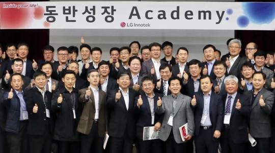LG이노텍이 19일 경기도 안산시 R&D캠퍼스에서 협력사 임직원 100여명을 초청해 R&D, 경영, 혁신, 환경안전 등 분야별 최신 동향과 대응 노하우를 공유하는 '동반성장 아카데미'를 개최했다.