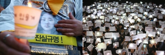 양진웅(2015.4.5, 서울 광화문 광장), 권우성(2014.4.17, 단원고등학교 희망의 불빛)/'세월호를 기억하는 사진' 페이스북