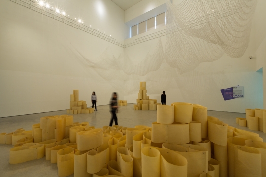 지니 서 '유선사(遊仙詞)'(2014-2015,가변설치 빨대구름, 장판지200장, 플라스틱 빨대·실리콘 줄)