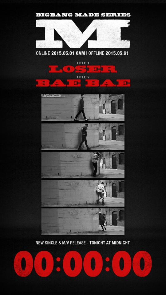 1일 0시 신곡 'LOSER'와 'BAEBAE'의 음원 공개를 앞두고 YG엔터테인먼트(이하 YG)는 30일 정오 공식블로그(www.yg-life.com)를 통해 3년 만의 빅뱅 컴백에 대한 기대감을 최고조로 부각시키는 카운트다운 포스터를 공개했다.