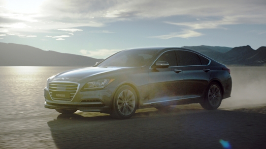 '메시지 투 스페이스' 영상 중 제네시스가 사막 위를 주행하며 타이어 트랙을 남기고 있다. / 현대차 제공