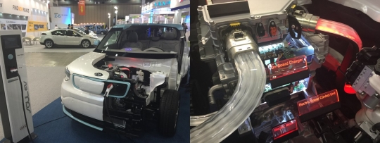 전시회에서 현대차는 투싼 ix35 수소연료전지차(FCV) 절개 모델을 전시해 관람객들이 내부를 훤히 들여다 볼 수 있는 공간을 마련했다. 기아차도 쏘울 순수전기차(EV) 절개 모델과 함께 관람객들이 충전플러그를 직접 꽂아볼 수 있는 충전기까지 마련했다. 이밖에도 현대차는 LF쏘나타 플러그인하이브리드카(PHEV)도 선보였다.