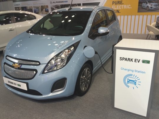 한국지엠은 EVS28에서 쉐보레 스파크EV를 전시했다.