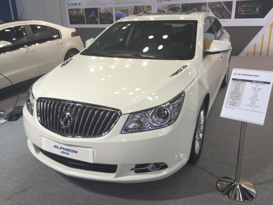한국지엠 부스에서는 쉐보레 스파크EV, 주행거리연장전기차(EREV) 볼트, 준대형 하이브리드 알페온이어시스트 등을 전시했다. 특히 한국지엠은 차세대 볼트를 내년에 국내 출시하겠다고 기자간담회에서 발표해 전기차 시장 확대 포부를 밝혔다.