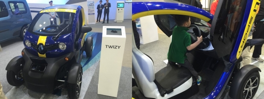 르노삼성이 전시한 전기차 트위지에 한 어린이가 앉아 전기차 체험을 하고 있다.