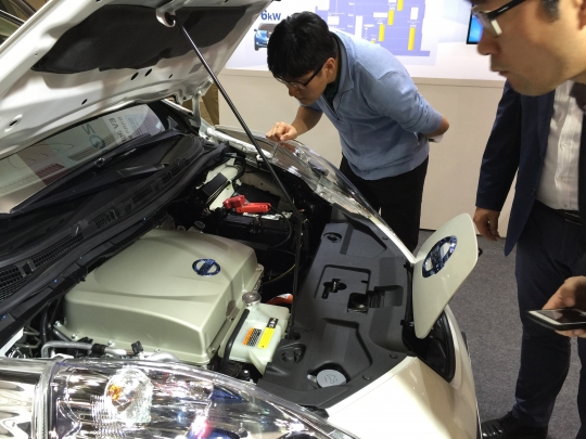 전시장에서는 특히 르노 트위지, BMW i3가 다른 전기차보다 독특한 외관을 뽐내며 관람객들의 이목을 집중시켰다. 이밖에도 관람객들은 새로운 전기차, 보통의 연료 주입구와는 다른 위치, 차에서 나오는 충전플러그 등을 직접 만져보고 체험하면서 흥미로운 표정을 지었다.