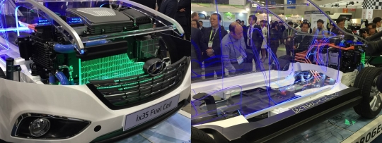 4일 경기 고양시 킨텍스에서 개막한 제28회 세계 전기자동차 학술대회 및 전시회에서 현대자동차의 수소연료전기차 ix35 모델이 전시된 모습