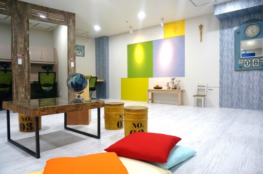 NC 꿈키움 공부방 오픈식 후 학생들이 기념사진을 하고 있다.