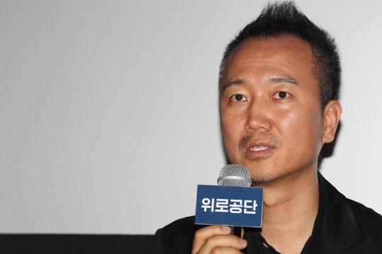 14일 오전 서울 동작구 아트나인에서 열린 '위로공단' 베니스 비엔날레 미술전 은사자상 수상 기념 기자간담회에 참석한 임흥순 감독이 취재진 질문에 답하고 있다.