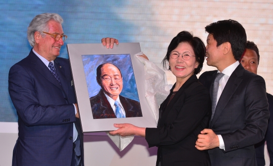 제막식에는 정상영 KCC명예회장, 정몽준 전 의원, 정의선 현대기아차 부회장, 정지선 현대백화점 회장 등 범 현대가 인사 200여 명이 참석했다.