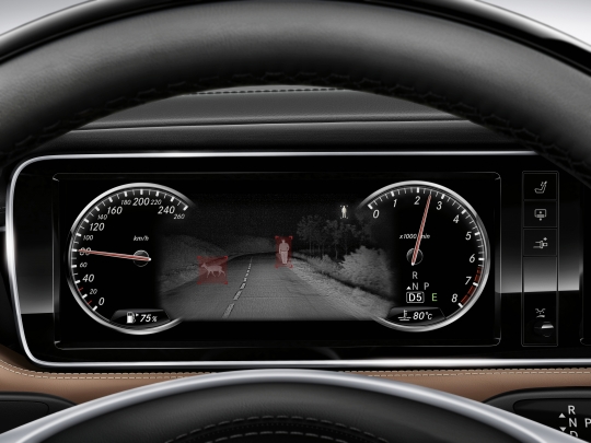 나이트 뷰 어시스트 플러스는 야간 운전시 적외선을 이용해 주변 물체를 감지하고 계기판에 이를 표시한다. 벤츠는 킨텍스 내부에 어두운 터널을 설치해 나이트 뷰 어시스트 플러스를 직접 체험하도록 했다.