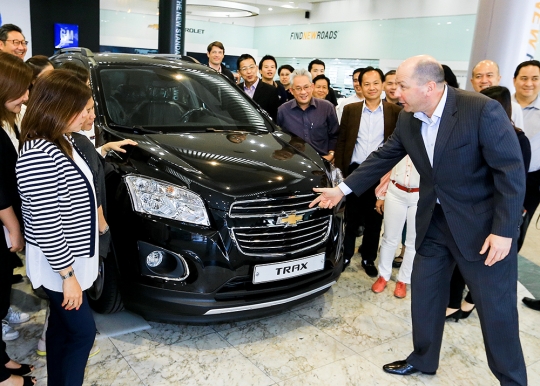 짐머만 지엠 SEA 사장이 전날 한국지엠 부평공장 홍보관을 방문한 아세안 지역 딜러들에게 트랙스를 소개하고 있다. / 한국지엠 제공