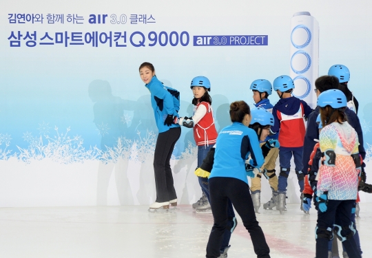 [메트로신문 임은정기자] 삼성전자는 전날 서울 목동 아이스링크에서 '김연아와 함께하는 air 3.0 클래스' 이벤트를 진행했다고 31일 밝혔다. '삼성 스마트에어컨 Q9000'의 모델 김연아는 이날 일일 스케이트 전도사로 나섰다. / 삼성전자 제공