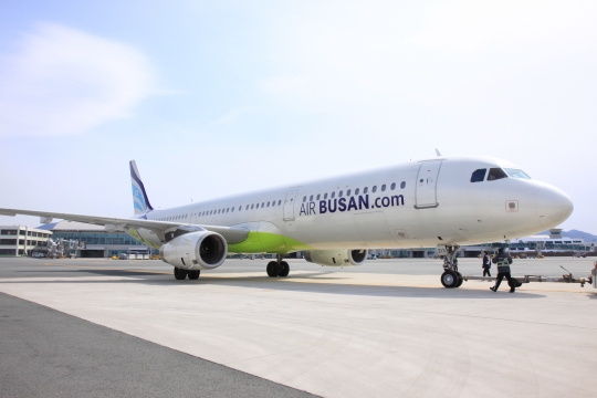에어부산 정비사들이 항공기를 점검하고 있다.