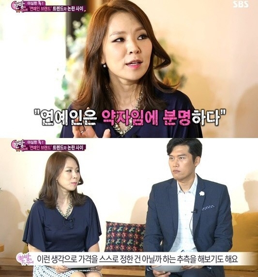 지난 17일 방송된 SBS '한밤의 TV연예'에서 장미인애의 쇼핑몰 가격 논란을 언급한 칼럼니스트 곽정은./방송캡처