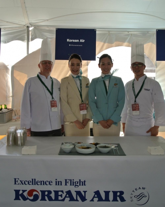21일 미국 아스펜에서 열린 33회 푸드&와인 클래식 행사에서 대한항공 조리사와 승무원이 비빕밥 기내식을 선보이고 있다.